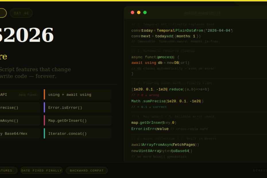 From a 30-year-old Date bug finally fixed, to automatic resource cleanup, to precise math — ES2026 is the JavaScript update developers have been waiting for.
