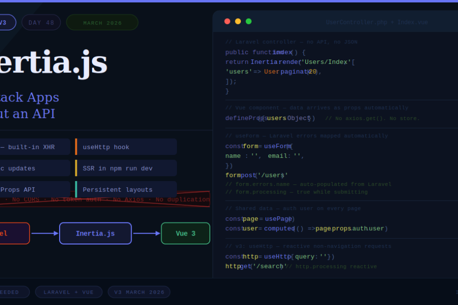 In 2026, with Inertia.js v3 freshly released, this stack has never been more capable or more ergonomic. Here’s the complete deep dive.