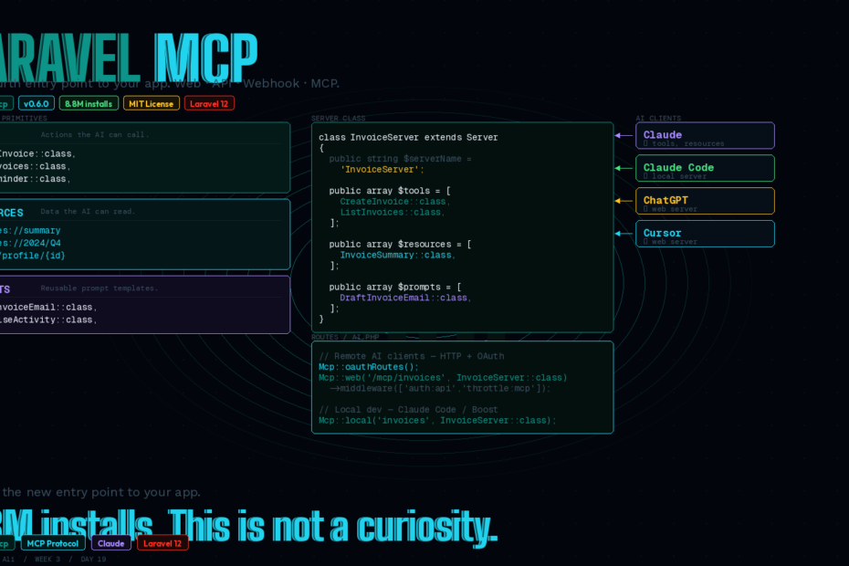 laravel/mcp is in the official docs, MIT licensed, and already has 8.8 million installs. Here’s what it does, why it matters, and how to build one from scratch.