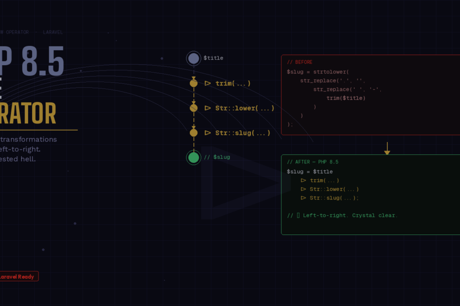 PHP 8.5 shipped on November 20, 2025, and while it brought several excellent additions, one feature stands above the rest: the pipe operator (|>). It’s been three years in the making, two failed RFCs, and now it’s finally in the language — and if you write Laravel, it’s going to change the way you transform data every single day.