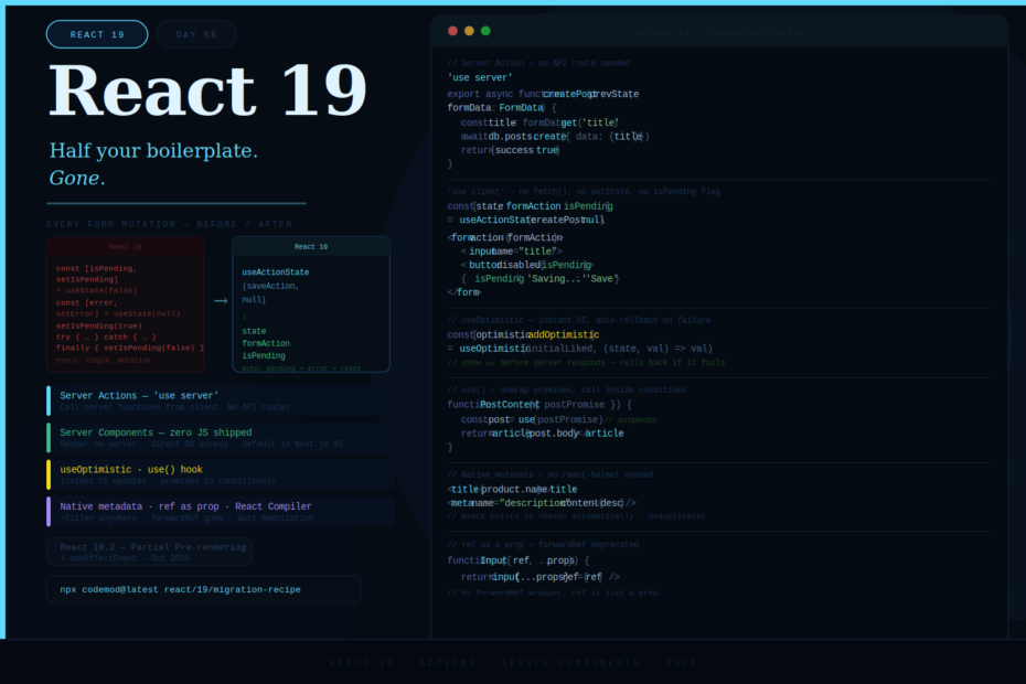 The version number is 19, but this release feels like a different React. Let’s walk through everything that changed.